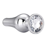 Analpluggen har en läcker silverfärg som matchar med den transparenta stenen i botten. Den är tillverkad i lätt och sömlöst aluminium som, tillsammans med den avsmalnande toppen, ger en behaglig införsel. Den breda och runda basen förhindrar den att slinka för långt in samtidigt som smycket sitter bekvämt mellan skinkorna.