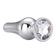 Analpluggen har en läcker silverfärg som matchar med den transparenta stenen i botten. Den är tillverkad i lätt och sömlöst aluminium som, tillsammans med den avsmalnande toppen, ger en behaglig införsel. Den breda och runda basen förhindrar den att slinka för långt in samtidigt som smycket sitter bekvämt mellan skinkorna.
