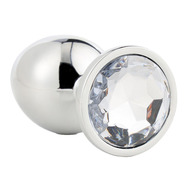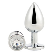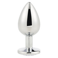 Upptäck den sensuella elegansen i Silver Plug Large från Gleaming Love–kollektionen, ett lyxigt pleasure-tillbehör skapat för dig som uppskattar både stil och njutning. Den släta, lättviktiga aluminiumkonstruktionen är helt sömlös och glider mjukt på plats, medan den utsvängda basen ger en trygg och behaglig passform. Det facetterade gem-smycket vilar vackert mellan skinkorna och ger en förförisk finish som glänser lika mycket som den känns.